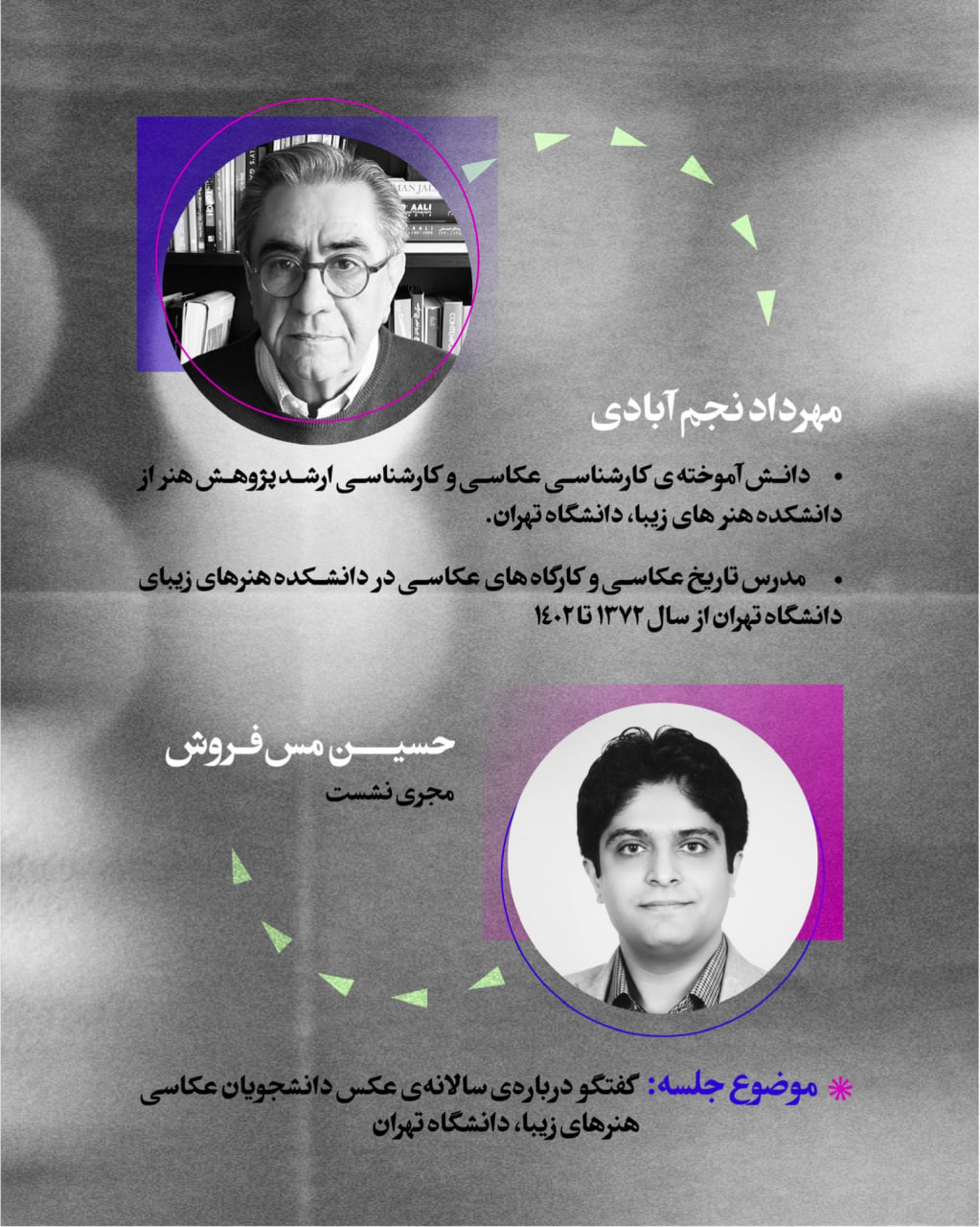 اولین نشست آنلاین نهمین سالانه‌ی عکس دانشجویان عکاسی دانشکده‌ی هنرهای زیبای دانشگاه تهران با عنوان «گفتگو درباره‌ی سالانه‌ی عکس دانشجویان عکاسی»: